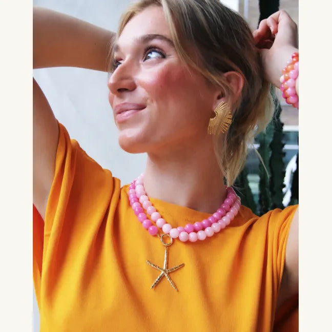 Bazon - Natural Stone Bead Necklace Fuchsia