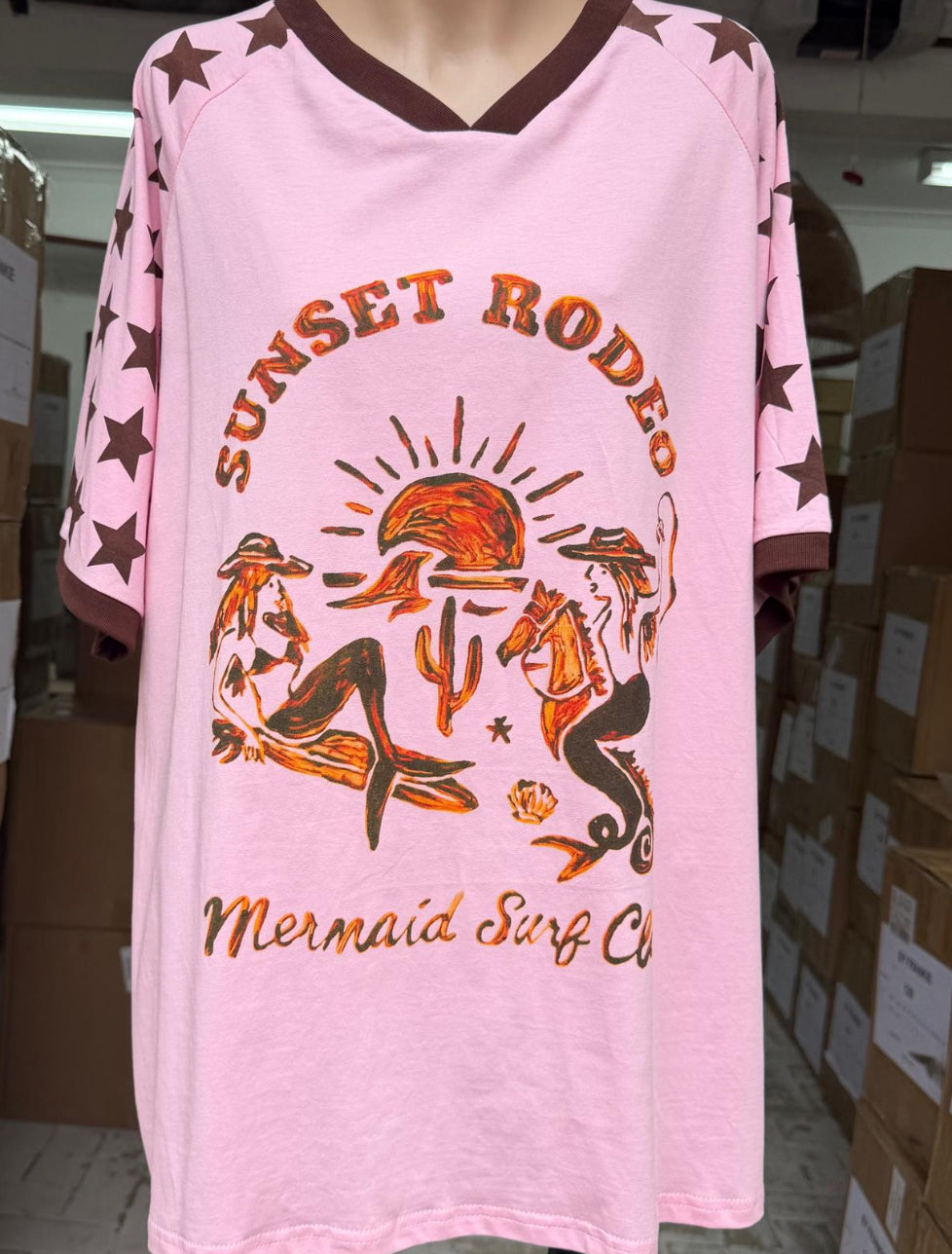 Sunset Mermaid Surf Club Tee - 100% Cotton