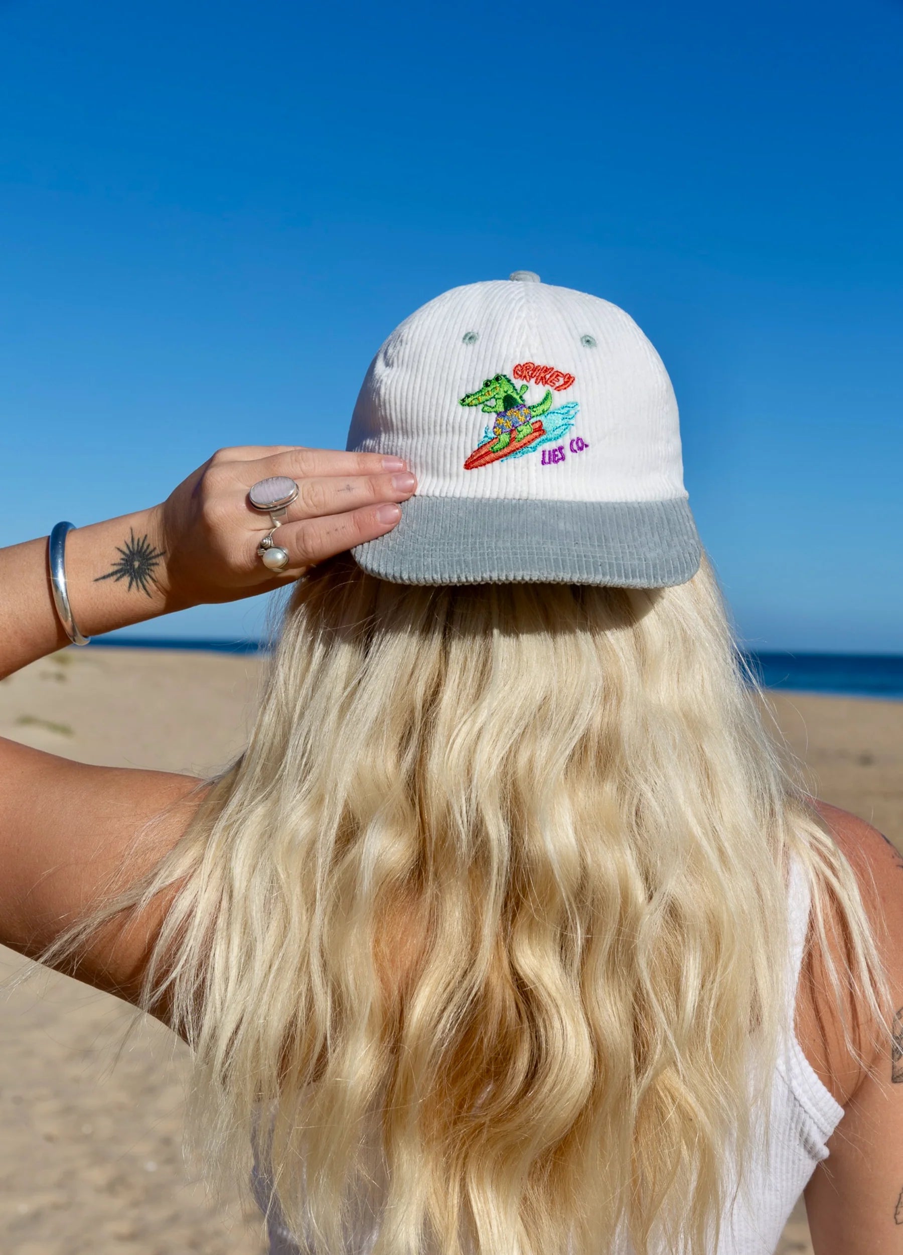 A hat with an alligator surfing down a ripper wave, now that's crikey! Get ready for some gnarly style with GATOR GLIDE! This unique hat features a rad alligator catching some major waves on a killer surfboard. Now that's what I call crocodile cool!