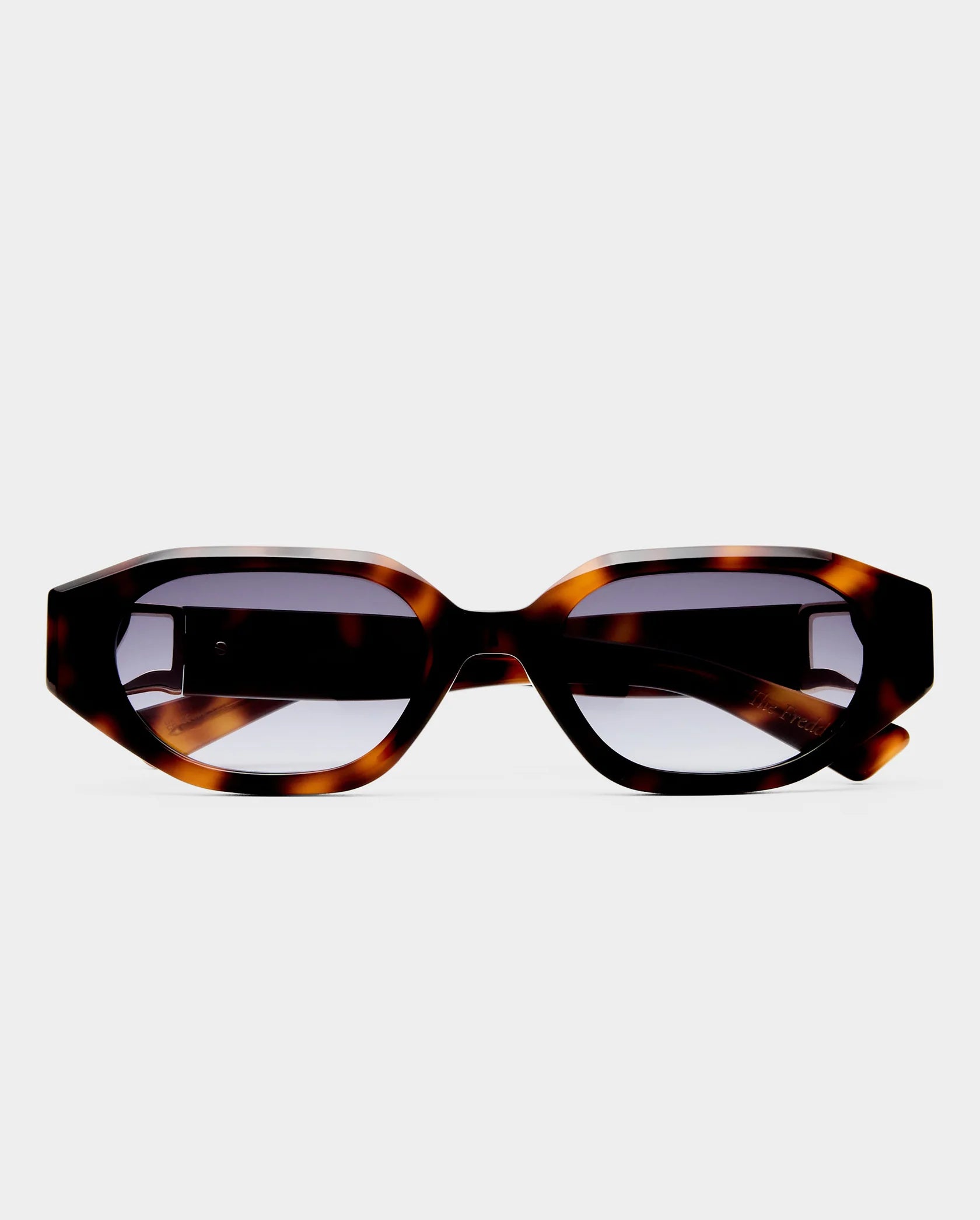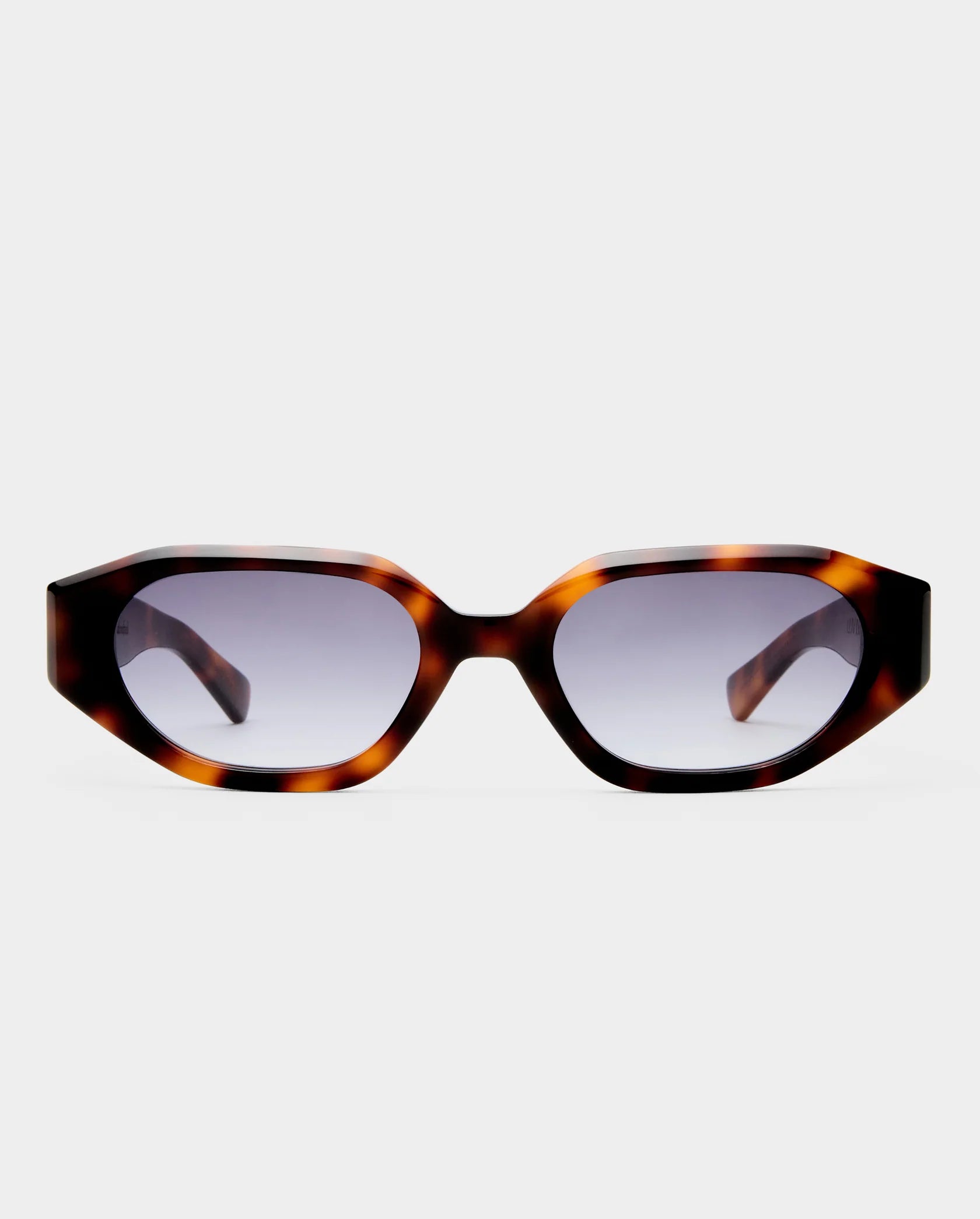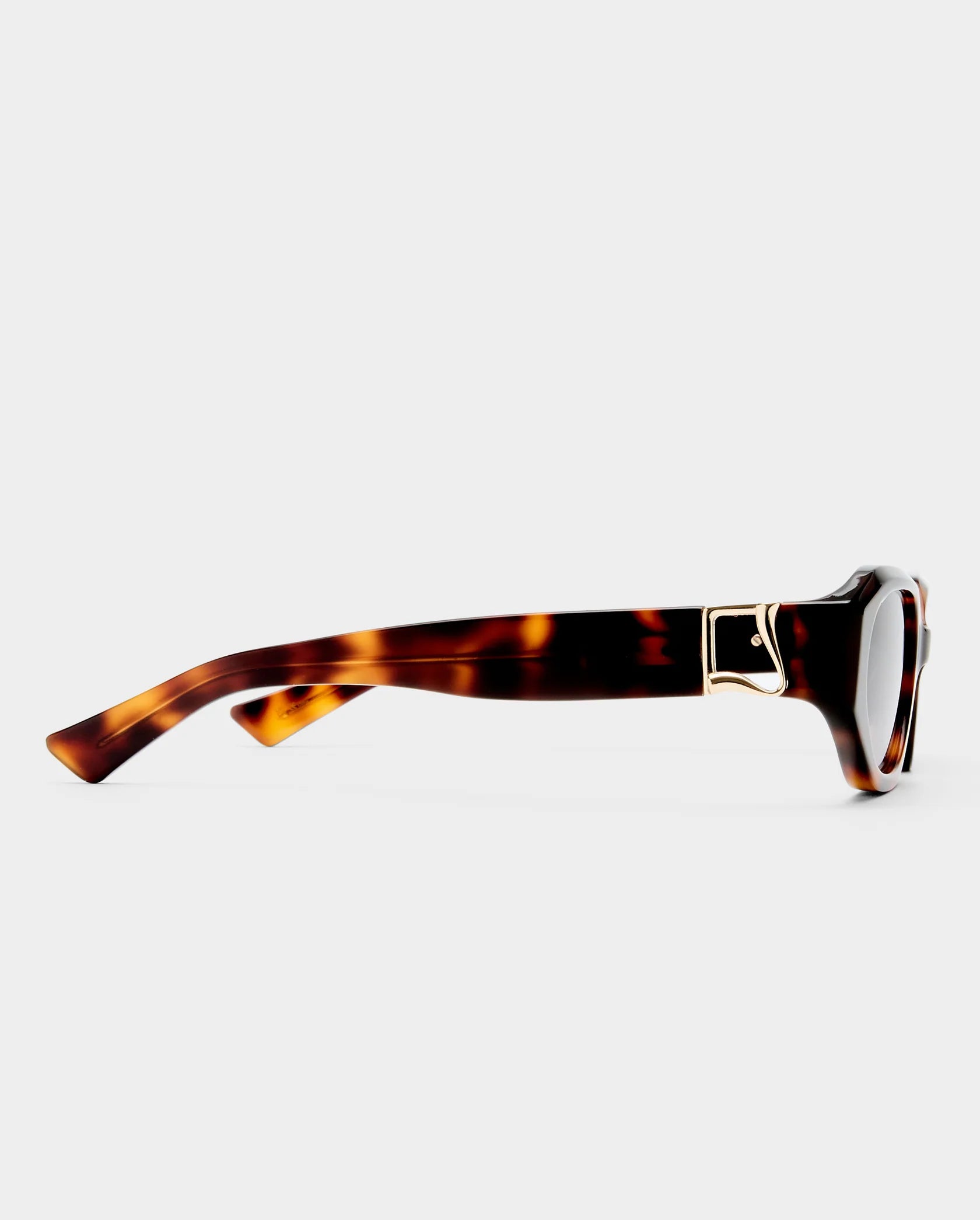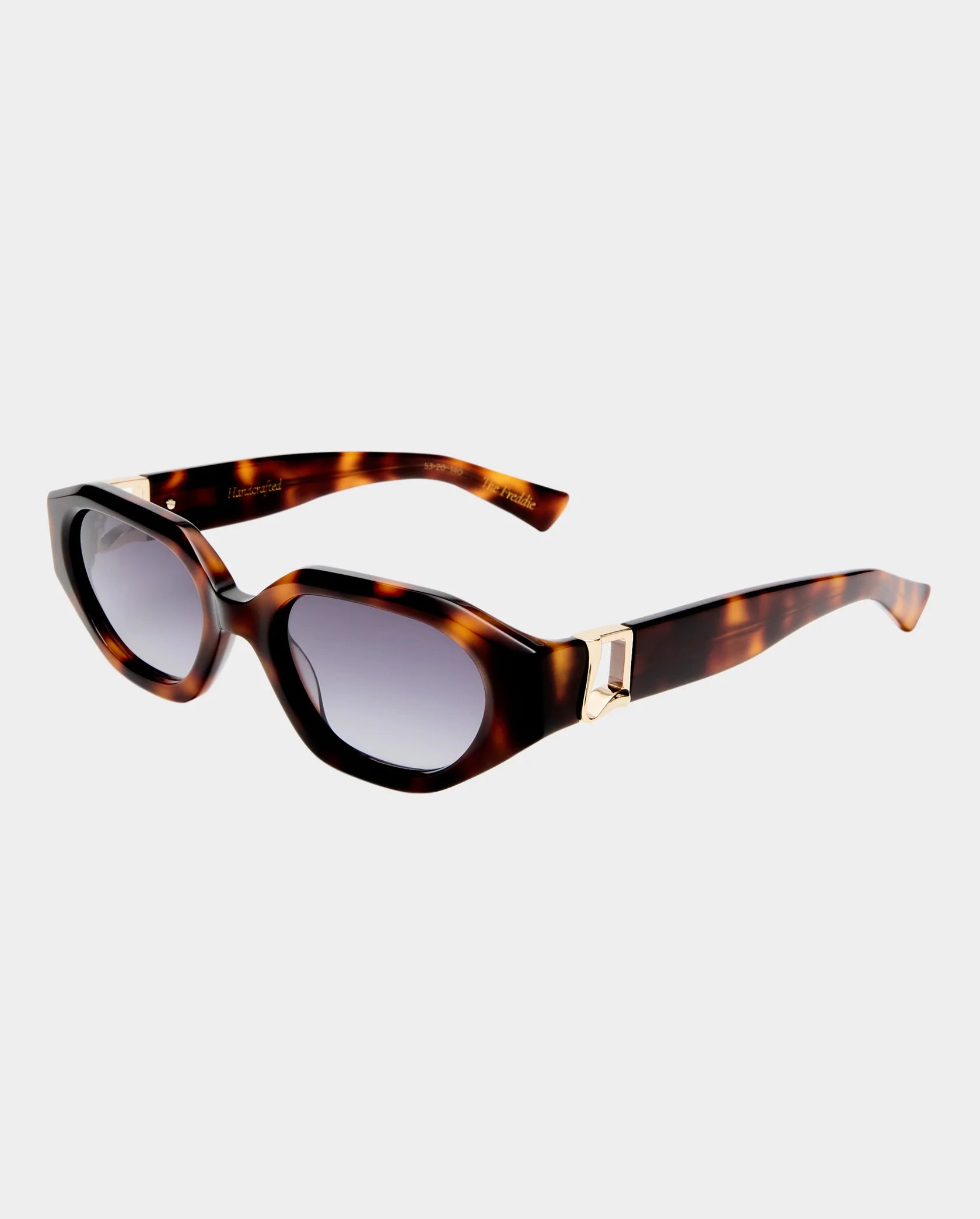 A statement silhouette for the modern muse. The Freddie reimagines the classic frame with a soft hexagonal shape and bevelled edges that catch the light from every angle. Bespoke organic L gold detailing at the temples adds a touch of polish, making this style feel both directional and refined.