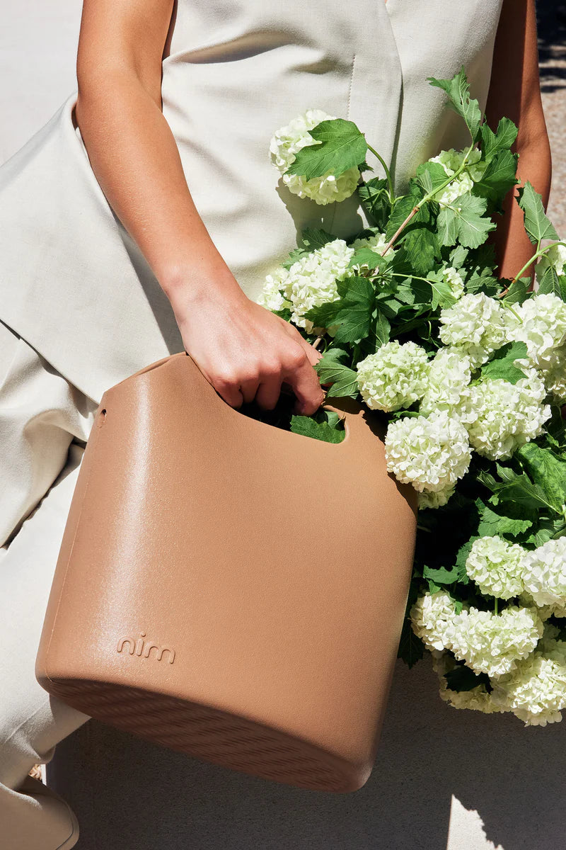 The original Nim Bucket Bag is a bold and unique approach to minimalist design. Our signature moulded body is crafted from 100% EVA, a lightweight, durable and waterproof material, consciously packaged in a reusable canvas tote.
