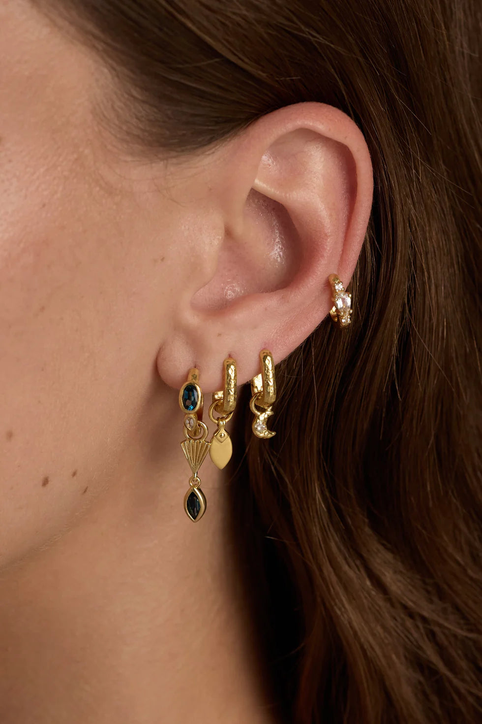 These textured huggies sparkle with a rich oval London Blue Topaz and a cheeky marquise Cubic Zirconia.