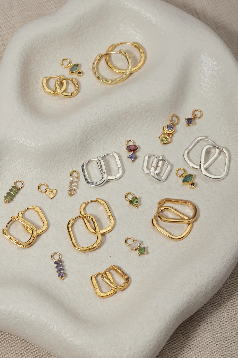 Our Polished Gold Huggies are designed to be layered and worn with our collection of earring charm.