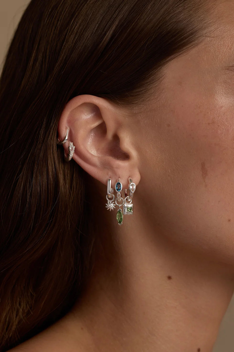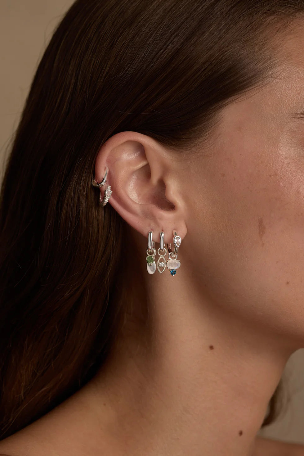 Set with a teardrop White Topaz in a sleek bezel, these huggies catch the light with every movement, adding shimmer and sparkle.