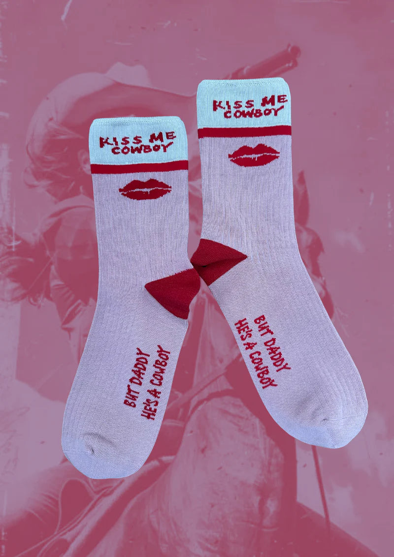 "Kiss Me Cowboy" printed on band, "But Daddy he's a cowboy" under sole.